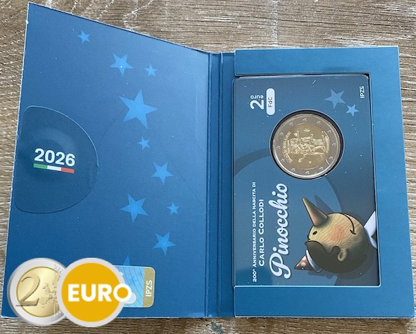 This 2 commemorative coin 2026 from Italy honors the 200th anniversary of the birth of Carlo Collodi, the Italian author best known for creating Pinocchio. On the national side, a dynamic depiction of Pinocchio with his signature long nose is featured, with his shadow looking toward the Talking Cricket — capturing the whimsy and moral lessons of the timeless tale. The top of the design reads “CARLO COLLODI 1826 – 2026”, and “PINOCCHIO” appears at the bottom. This coin celebrates one of literature’s most iconic characters and Italy’s rich storytelling tradition.