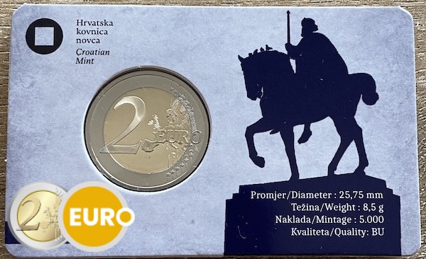 This 2 euro commemorative coin celebrates 1100 years of the Kingdom of Croatia and the coronation of King Tomislav in 925. As Croatia’s first king, Tomislav led the country into an era of unity and independence.