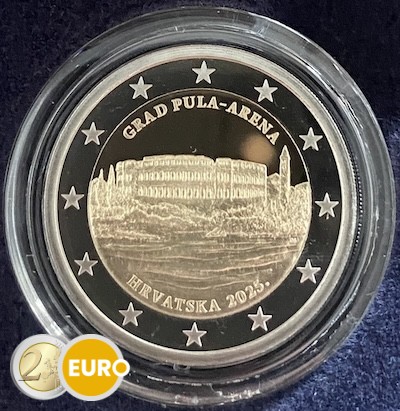 Esta moneda de 2 euros conmemorativa rinde homenaje al Anfiteatro de Pula, una de las arenas romanas mejor conservadas del mundo. Esta impresionante estructura del siglo I simboliza el rico patrimonio e historia de Croacia.