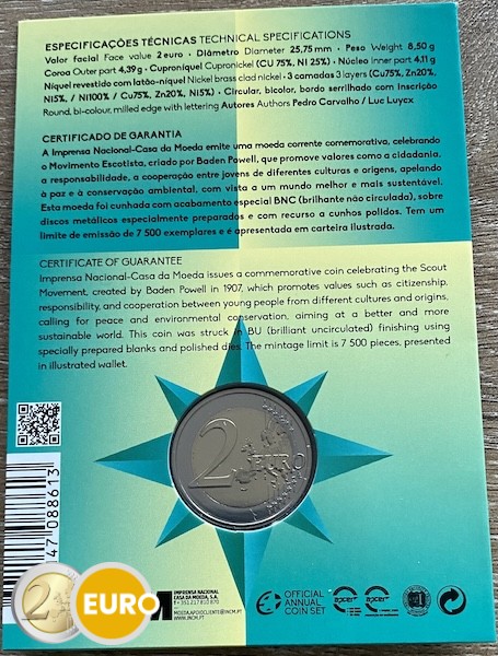 Esta moneda de 2 euros conmemorativa está dedicada a los Scouts y Movimientos Juveniles. Rinde homenaje a los valores de solidaridad, amistad y compromiso que inspiran a los jóvenes en todo el mundo.
