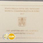 El motivo muestra a San Pedro y San Pablo y sus símbolos, las llaves y la espada, respectivamente. En la parte superior figura la inscripción «CITTÀ DEL VATICANO», en semicircunferencia. En la parte inferior, en semicircunferencia, aparece la inscripción «1950º DEL MARTIRIO DEI SANTI PIETRO E PAOLO». En la parte inferior izquierda figura el año de emisión, «2017», y en la parte inferior derecha se encuentra la marca de ceca, «R». En medio aparece el nombre del artista «G. TITOTTO». En la corona circular de la moneda figuran las doce estrellas de la Unión Europea.