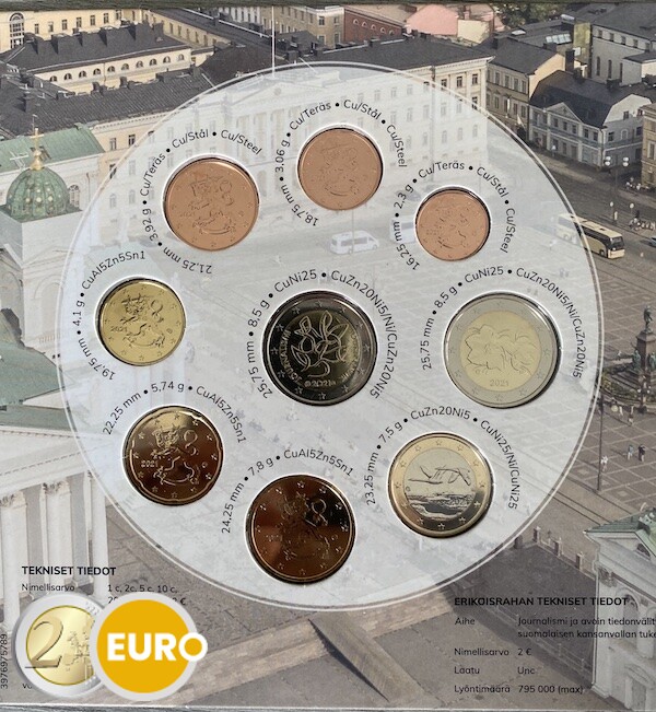 Con las monedas de 1 céntimo a 2 euros + 2 euros conmemorativa Periodismo