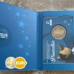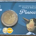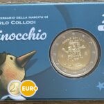 De 2 euro herdenkingsmunt van Italië uit 2026 viert de 200e verjaardag van de geboorte van Carlo Collodi, de Italiaanse schrijver die wereldwijd beroemd werd met het verhaal van Pinocchio. De nationale zijde toont een levendige voorstelling van Pinocchio met zijn karakteristieke lange neus en zijn schaduw die naar de pratende krekel kijkt, een scène die de verbeelding en moraal van het meesterwerk symboliseert. Bovenaan staat “CARLO COLLODI” met de jaartallen “1826 – 2026”, en onderaan verschijnt het woord “PINOCCHIO”. Deze munt brengt hulde aan een van de bekendste figuren uit de kinderliteratuur en aan het literaire erfgoed van Italië.