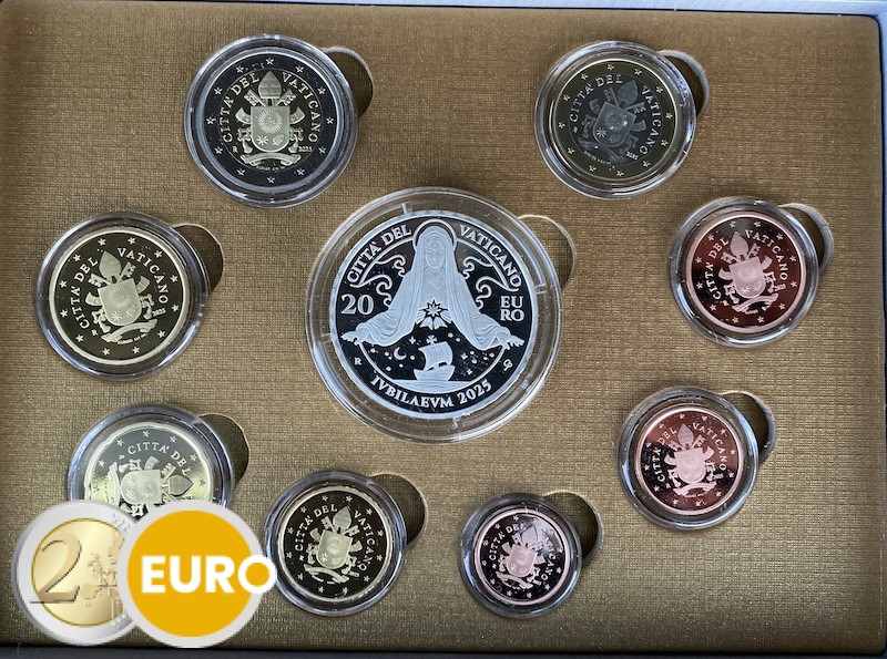 Met de munten van 1 cent tot 2 euro + 20 euro zilver Paus Franciscus Heilig Jaar 2025