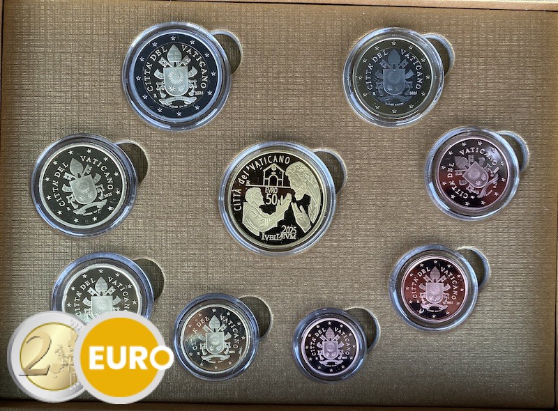 Met de munten van 1 cent tot 2 euro + 50 euro goud Paus Franciscus Heilig Jaar 2025